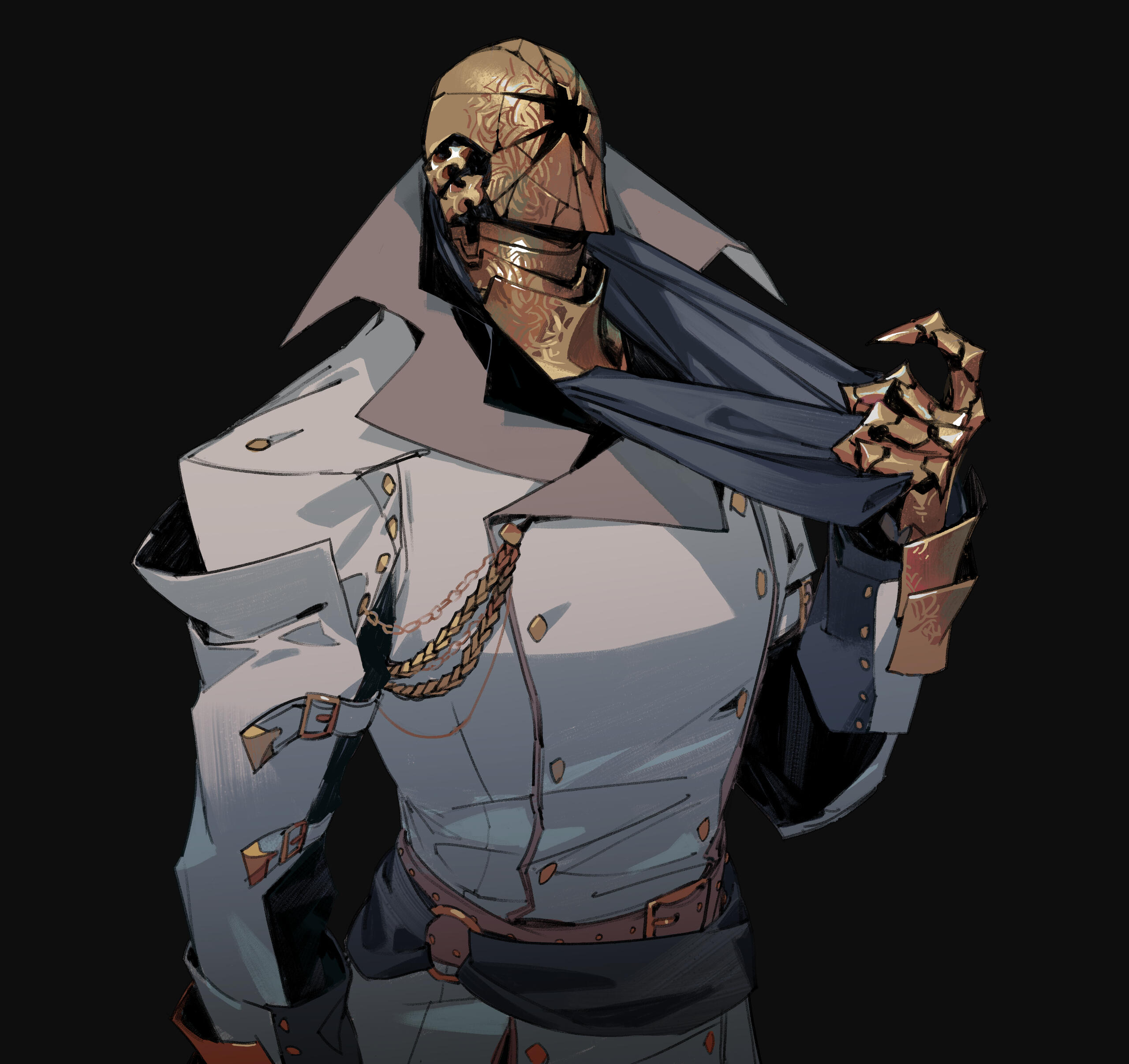 ▫ I will not tolerate any form of bigotry, transphobia, homophobia, or racism.▫ I am 21+, and feel most comfortable when writing partners are as well.▫ I am most interested in mature and dark themes, though I am down for a lot of different kinds of RP as long as we communicate clearly OOCly first! For mature themes, I absolutely require the consent of all involved.▫ Criticality can be antagonistic and confrontational, but please know I am never trying to make anyone uncomfortable. IC ≠ OOC, and even if I am very excited about your character, he may still be a huge ass. If you are uncomfortable with conflict, please let me know and we can coordinate appropriately. ♥▫ Criticality is not available romantically. If that is the kind of RP you're interested in, it may be best to look elsewhere!▫ I am very introverted, with a limited social battery, so sometimes correspondence and scheduling RP may take me some time! I ask that you be patient with me, I am just a tired old gay.▫ All of the artwork on this page is by me. If you want more unhinged ramblings and art about him (and perhaps his original Robot form), you can check out my bluesky. Thanks for taking the time to read about my bastard man.